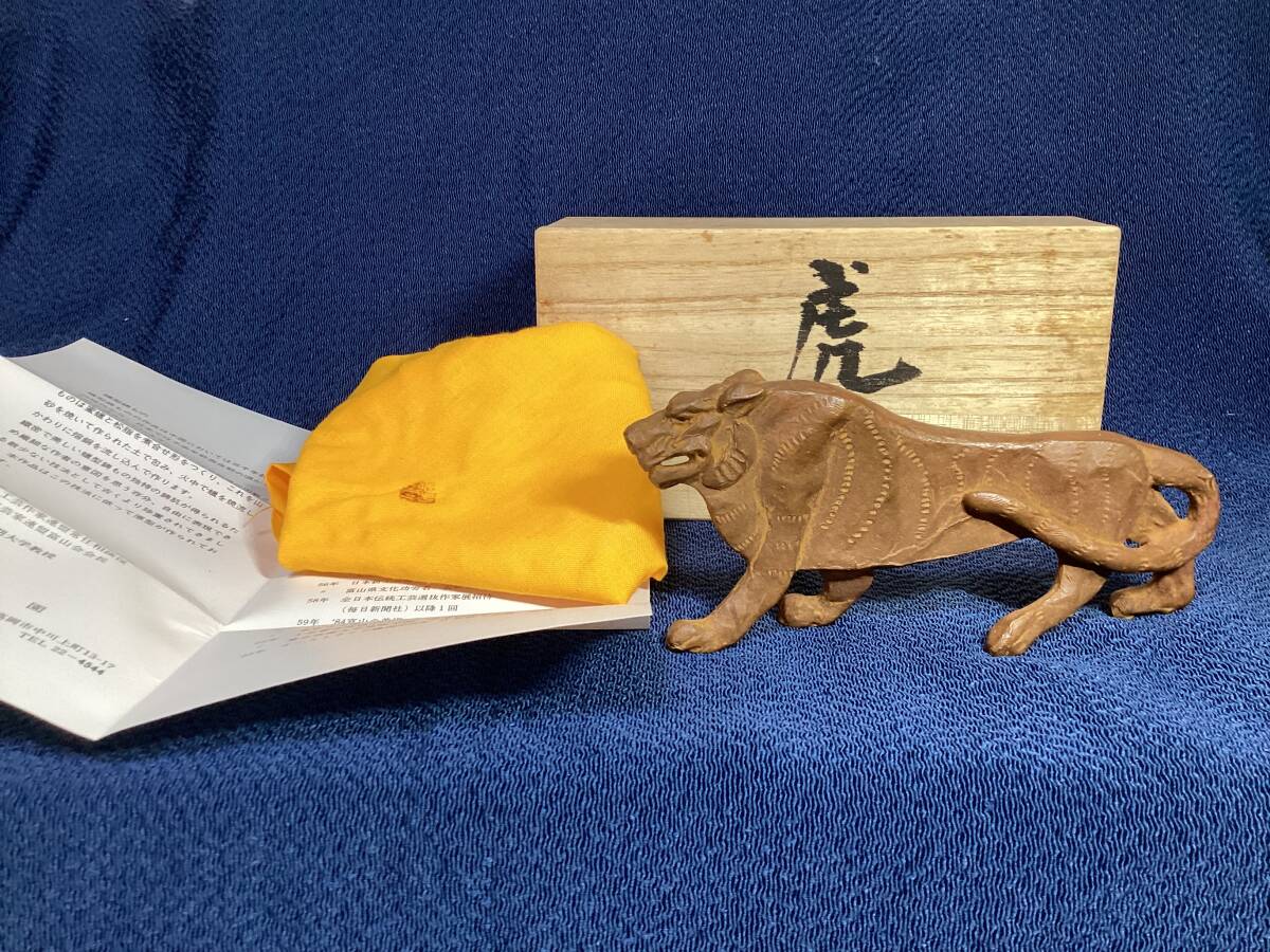 - 初だし 三代目須賀松園 虎 蝋型鋳物 共箱共布付 栞付 置物 オブジェ 干支