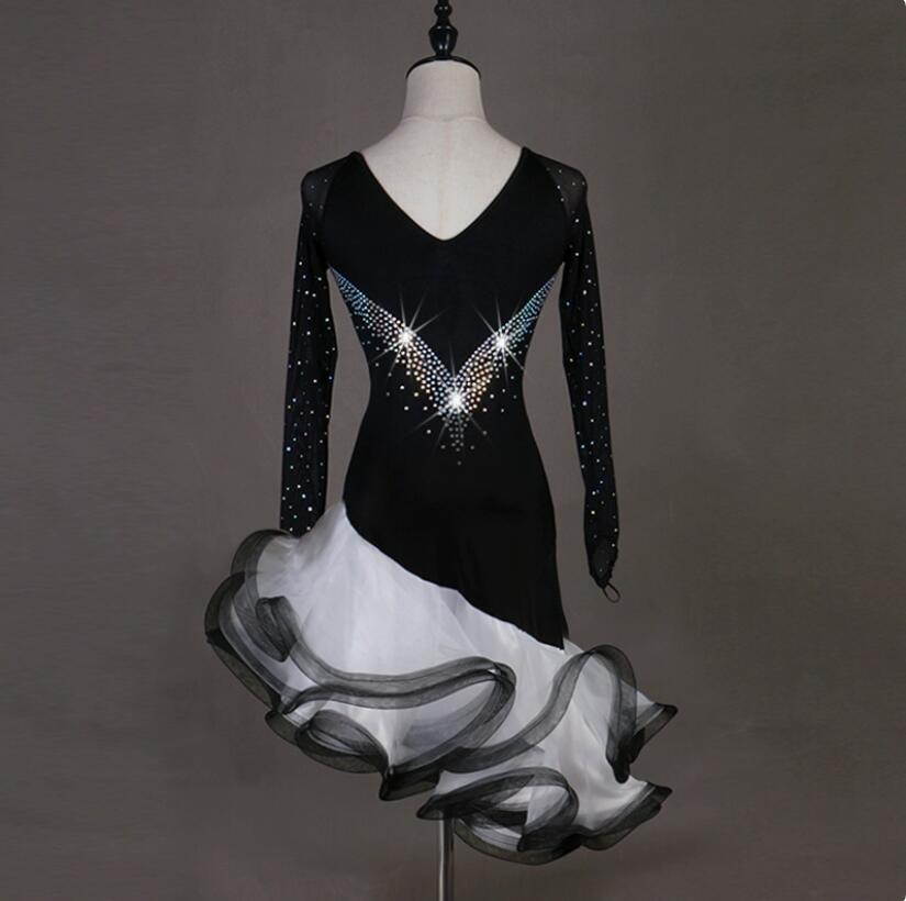 - 上質新作 レディースラテン競技ワンピース 社交ダンス衣装 軽い 石と玉飾り ブラック サイズS~XX