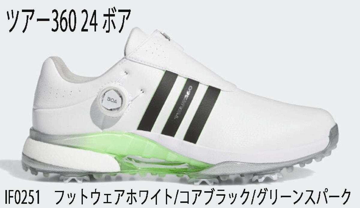 > 新品■アディダス■2024.3■ツアー360-'24 ボア スパイク■IF0251■ホワイト/コアブラック/グリーンスパーク■26.0CM■正規品