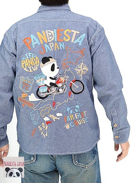 > 日本縦断トリップパンダシャンブレー長袖シャツ◆PANDIESTA JAPAN インディゴMサイズ 564200 パンディエスタジャパン 刺繍