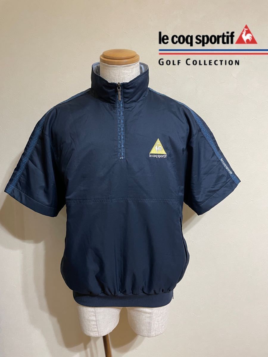 - 【美品】 le coq sportif golf ルコック ゴルフ ウェア ハーフジップ ウインド 中わた ジャケット プルオーバー サイズM 半袖 ネイビー