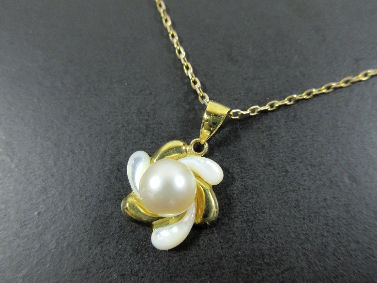 - K18YG 6.6mm アコヤ真珠 シェル フラワーモチーフ ゴールド ネックレス 3.6g 39.3cm J183
