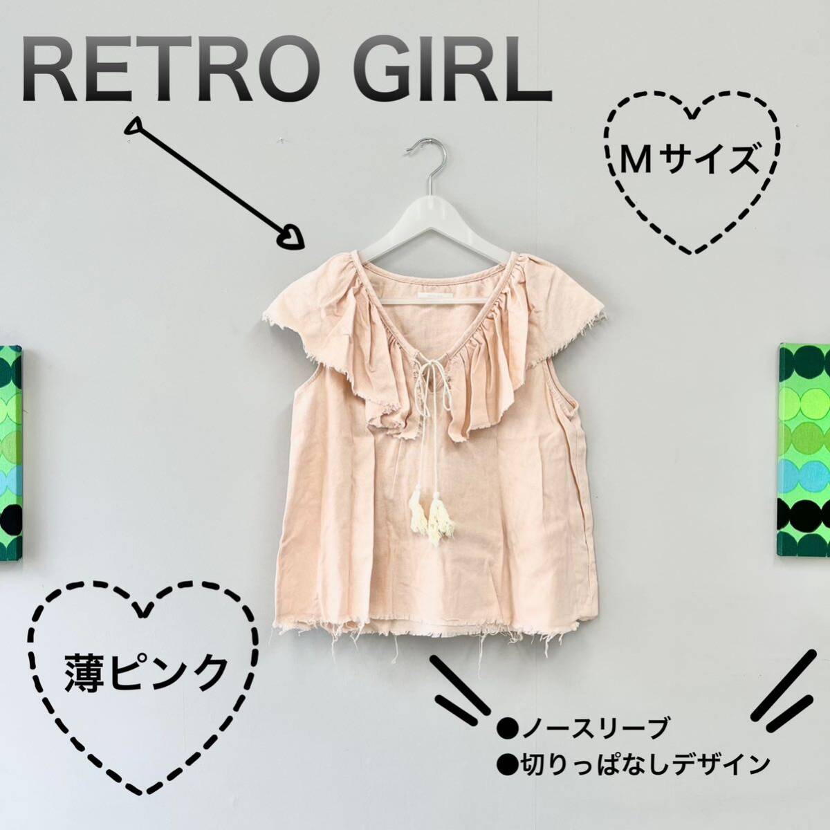 - 【RETRO GIRL】薄ピンク ノースリーブ Mサイズ 切りっぱなし