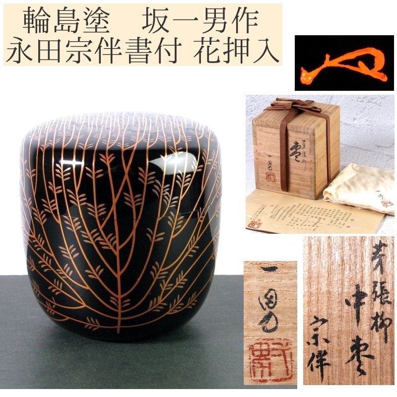 - 輪島塗 坂一男作 芽張柳蒔絵 中棗 永田宗伴書付 花押入 幅:7.2cm 極美品 茶道具/24i055