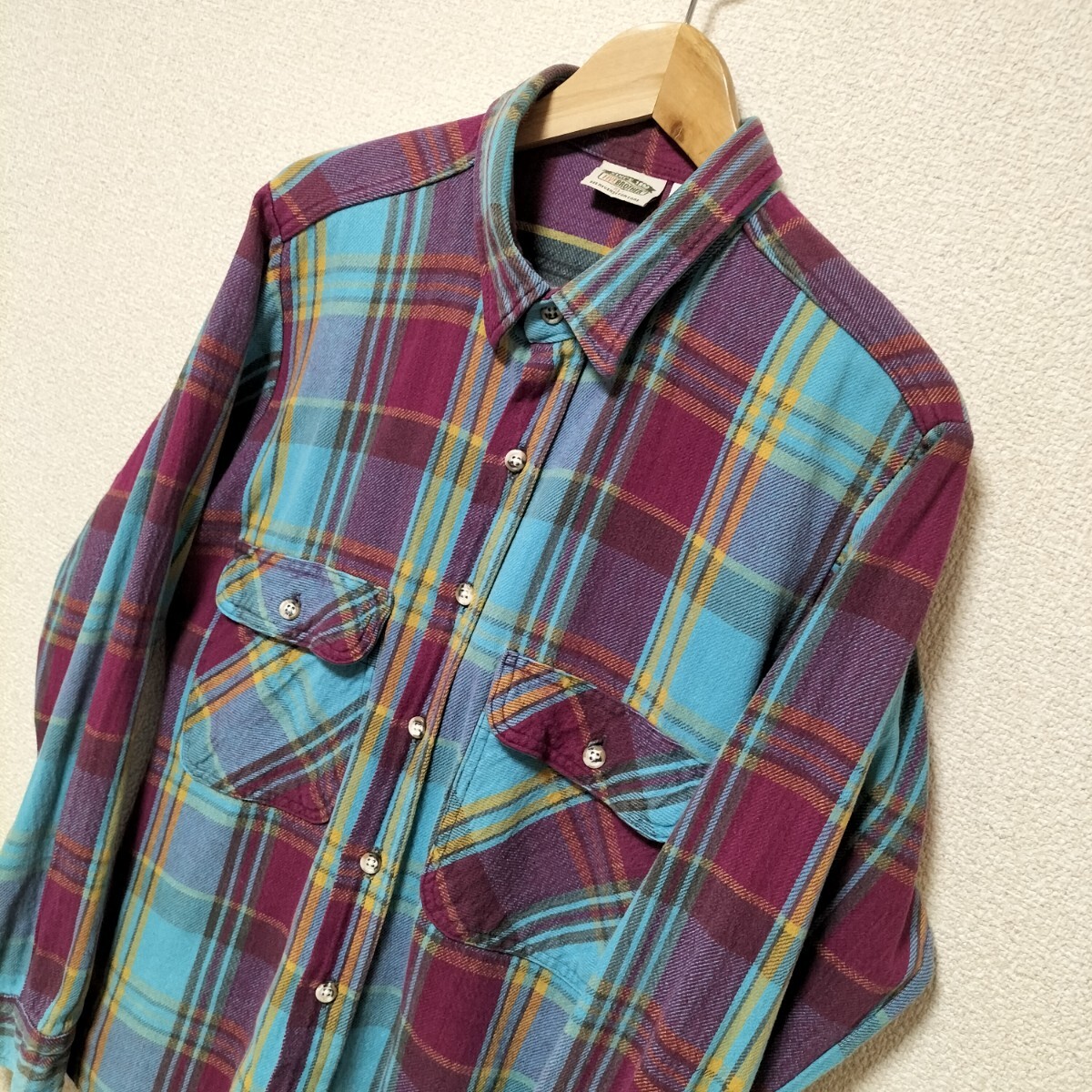 - ☆90s FIVE BROTHER 長袖 ヘビーネルシャツ コットン チェック ターコイズ ボルドー メンズ サイズXL オールド ファイブブラザー 古着 USED
