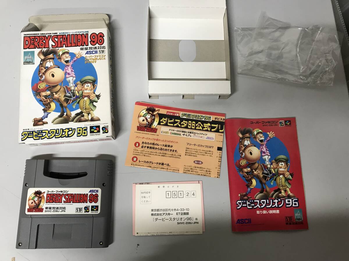 - 起動確認済み スーパーファミコン ダービースタリオン96 箱 取説 はがき゛あり