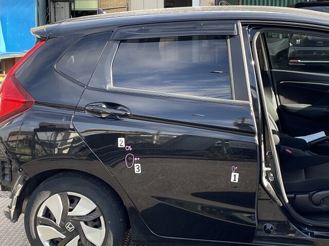 - 35026☆部品取☆フィットハイブリッド GP5☆右リアドア☆NH731P 黒【67510-T5A-J00ZZ】