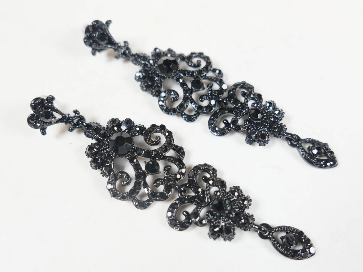 - ♪中古★MECRESH ピアス ドロップ ブラック ストーン レディース アクセサリー