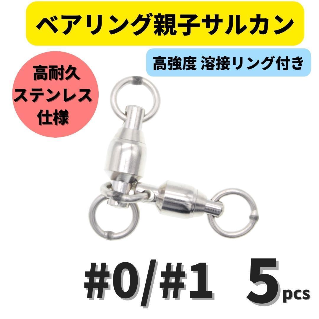 - 【送料150円】ベアリング親子サルカン #0/#1(19㎏) 5個セット ステンレス製スイベル 高強度溶接リング 高耐久 泳がせ釣り 深海釣り