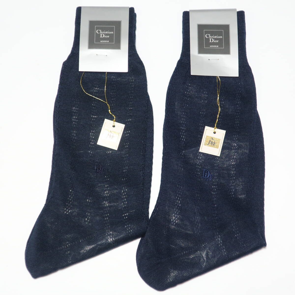 - クリスチャン・ディオール 日本製 麻 靴下 2足 濃紺 リネン ソックス 本麻 ネイビー 紺 紳士 メンズ 薄手 クール 夏用 夏物 christian dior