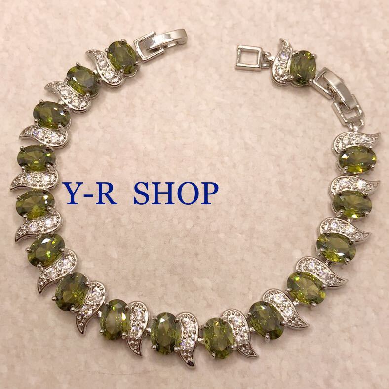 > ペリドットとホワイトトパーズのエレガントブレスレット★レディース腕輪バングルシルバーアクセサリーカラーストーン新品宝石Y-R SHOP