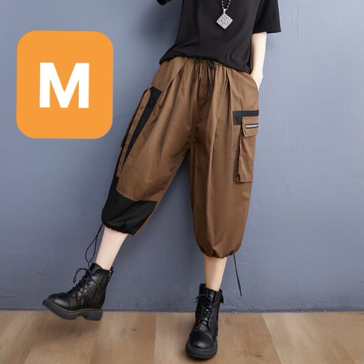 - ハーフパンツ カーゴパンツ ワイドパンツ 膝下丈 ボトムス トレンド ストリート メンズ レディース サルエル オルチャン ブラウン 茶色 M
