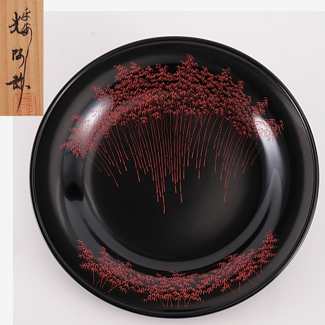 - ◆◇平安 光阿弥 竹林文青梅盆 黒塗漆器 お盆 菓子盆 トレイ 茶道具 懐石道具◇◆