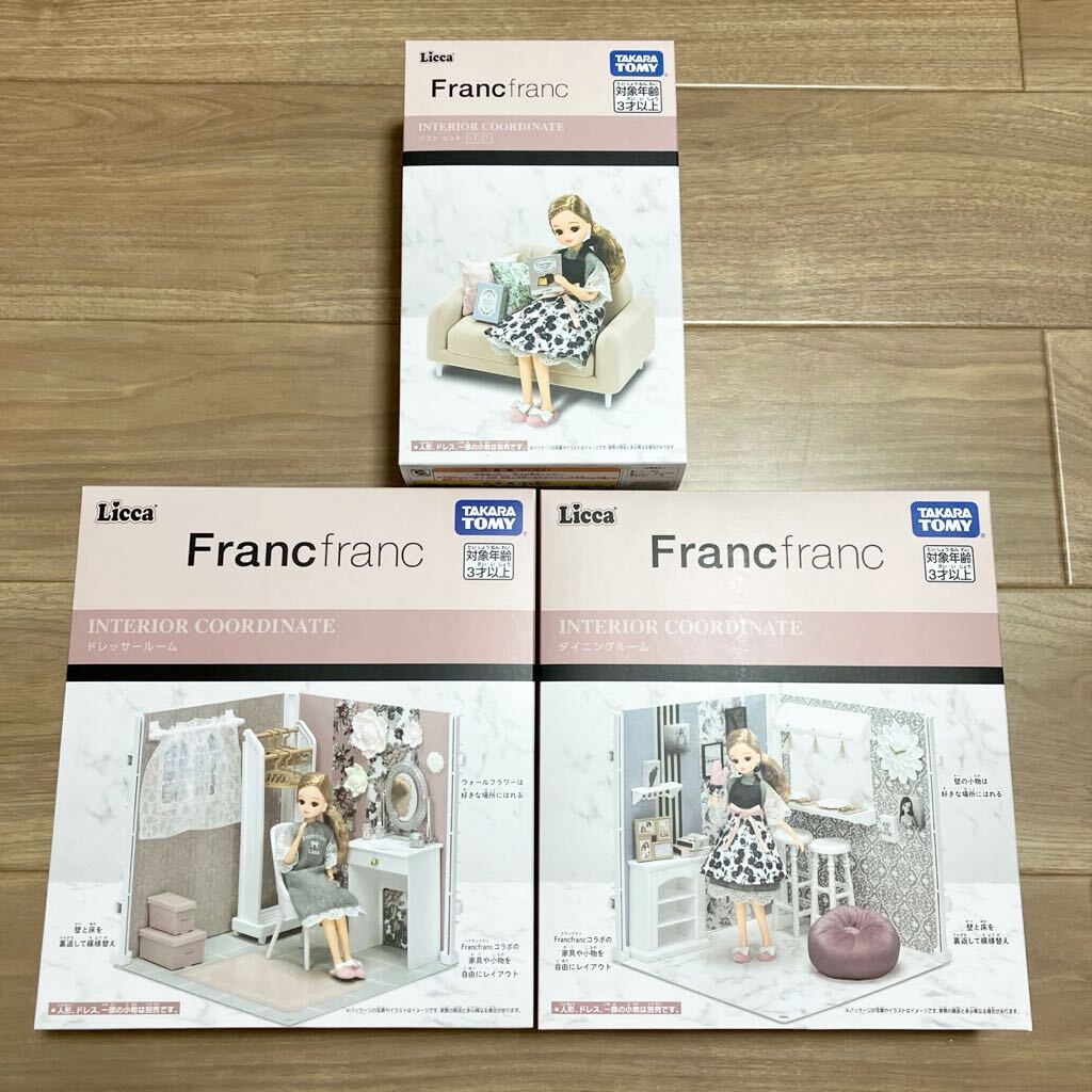 - 即決新品リカちゃん Francfranc インテリア コーディネートセット 3個 家具 お部屋 ミニチュア フランフラン ソファ ダイニング ドレッサー