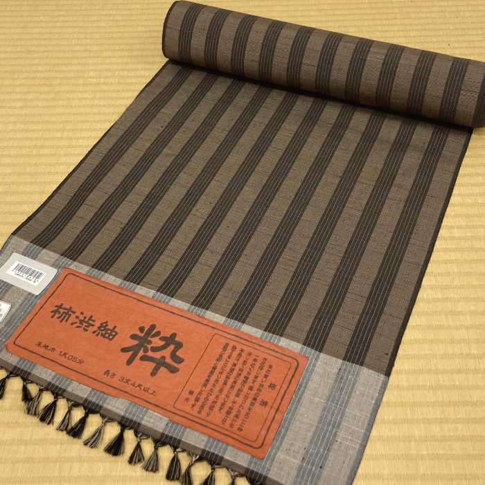 - 柿渋紬 反物 絹 男性 メンズ 女性 レディース 未仕立て 着物 紬 縞 普段着物 粋 茶系