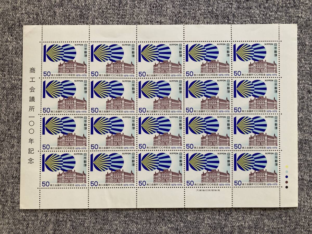 > ★未使用 商工会議所100年記念 マーク 旧会議所 1978年 昭和53年 切手シート 50円 20枚 日本郵便