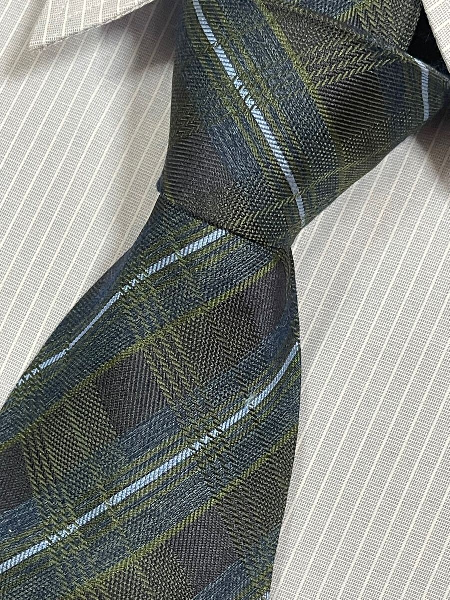 - ほぼ未使用 ″LUIGI BORRELLI NAPOLI″ ルイジボレッリ チェック セッテピエゲ ブランドネクタイ 410080