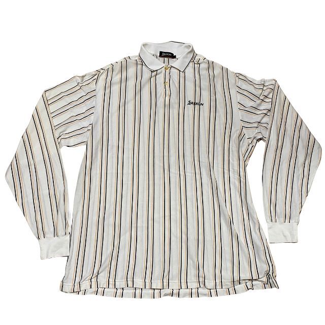 - 大きいサイズ スリクソン ストライプ 長袖ポロシャツ ゴルフウェア 刺繍ロゴ SRIXON スポーツウェア ロゴボタン ビッグサイズ 雅瀬730