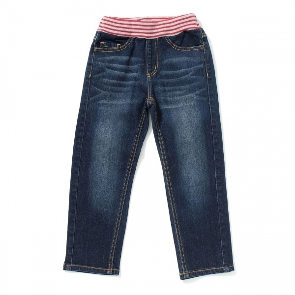 > 新品 HusHusH ウエストリブストレッチパンツ ネイビー(腰のラインのカラーがレッド) 140cm 定価2149円