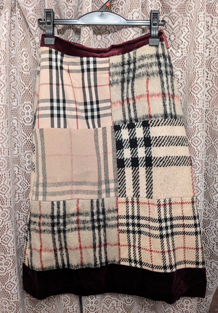 - BURBERRY■ENGLAND■台形スカート■ノバチェック柄■パッチワーク配列×エンジベロア■WOOLウール100%■レア希少/ヴィンテージ■自宅保管品