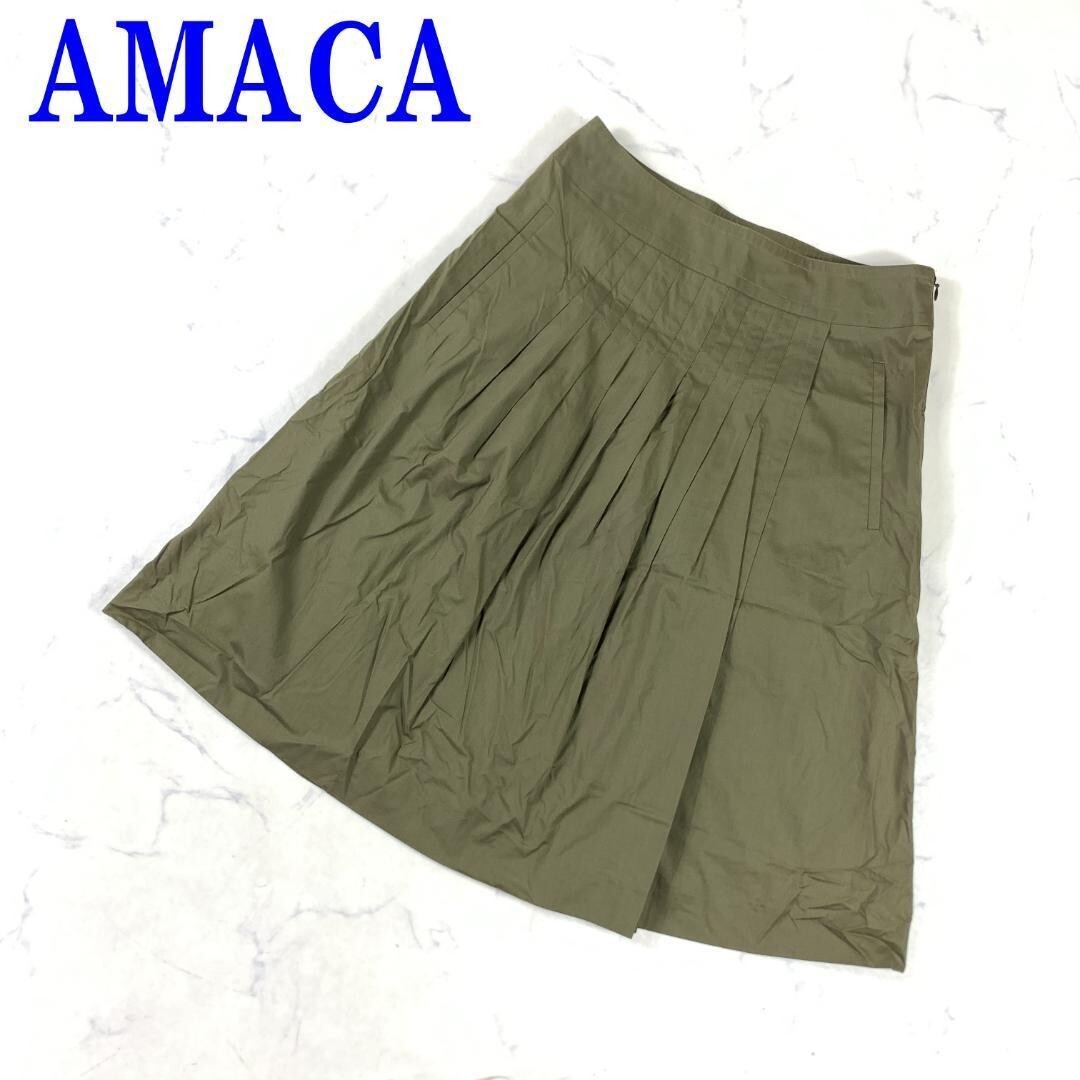 - アマカ ロングワンピース フレア 綿 モスグリーン 緑系 AMACA コットン カーキ オリーブ 36 C1352