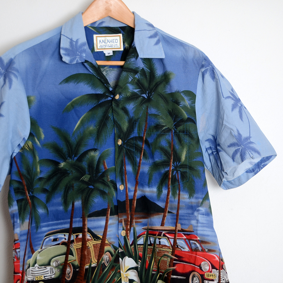 - AA524 カラヘオ KALAHEO アロハ 半袖シャツ M 肩56 総柄 開襟 クラシックカー メール便可 xq