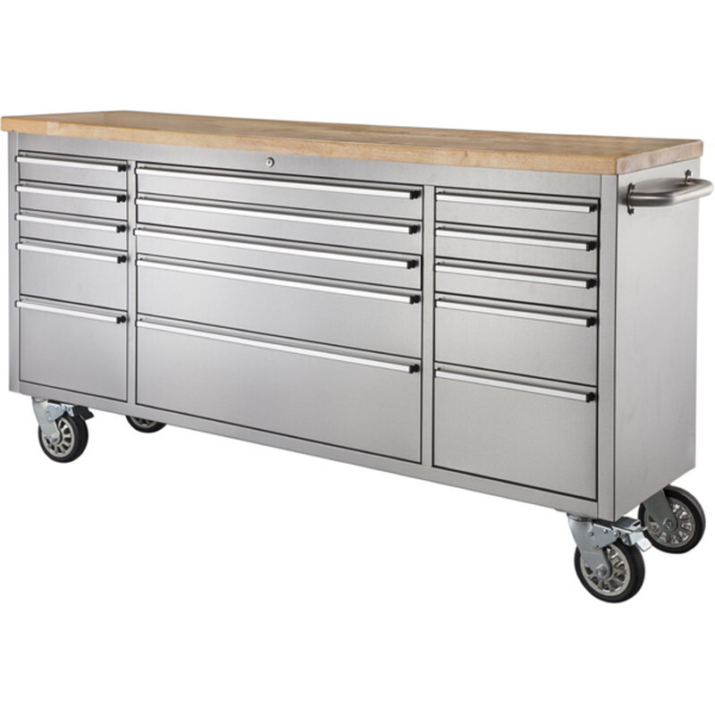 - ツールキャビネット 【シルバー】 ステンレス 天然木(ラバーウッド) ウレタン塗装