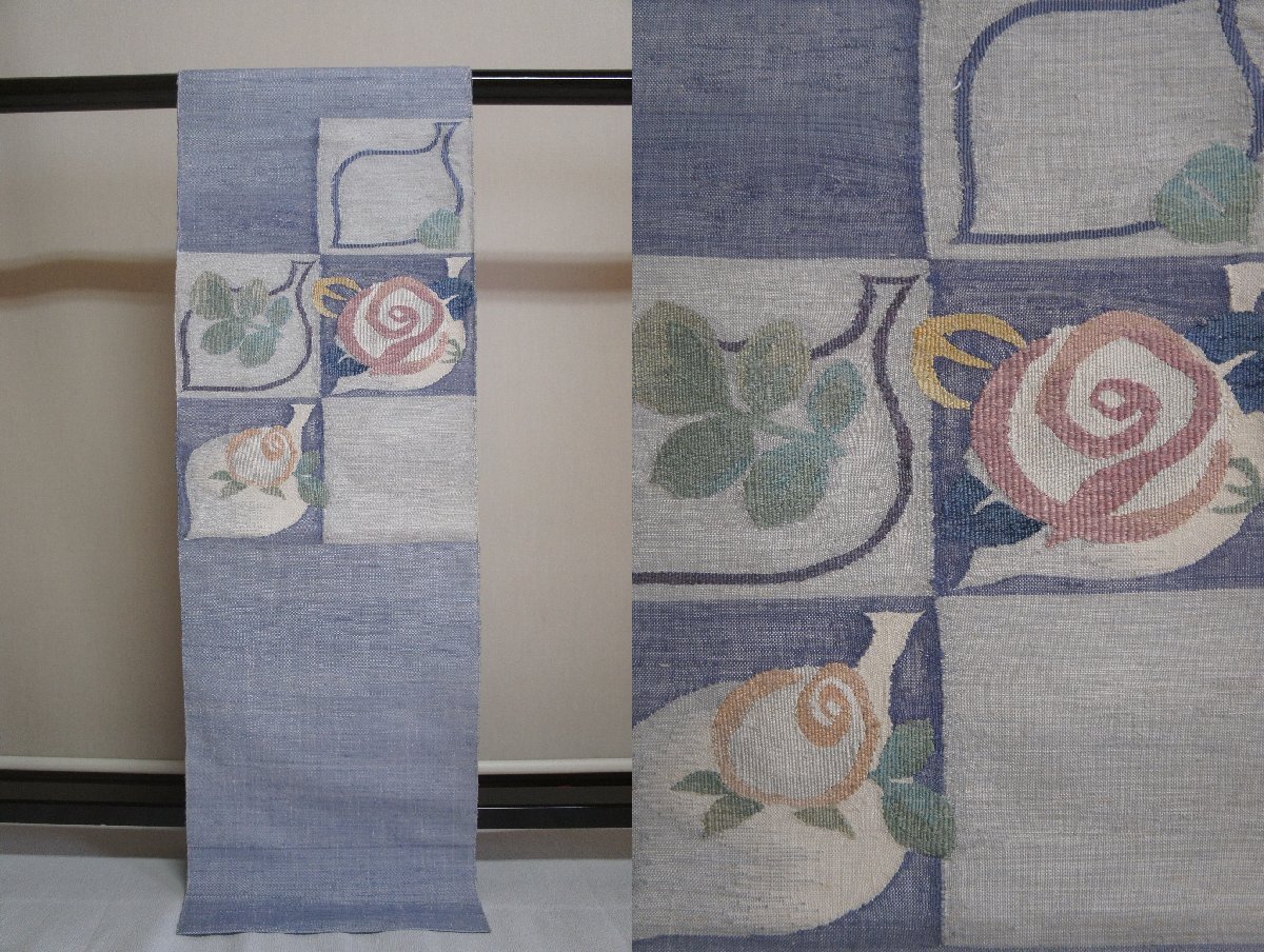 - 正絹紬地つるばねず色雲井ねず色市松花模様名古屋帯[N15404]