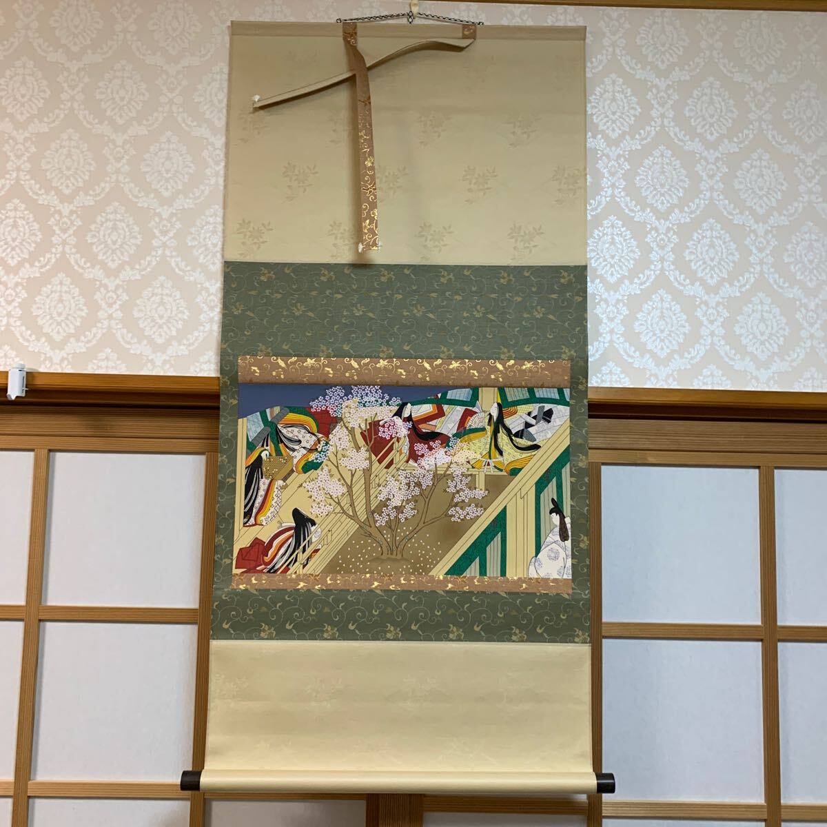- 掛軸 模写 源氏物語画 木箱有り No.5-19