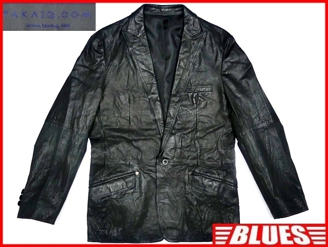 > 即決★TAKA;Q★メンズM レザーテーラードジャケット タカキュー 黒 ブラック 本革 スーツ 本皮 ビジネス 革ジャン ブレザー テーパード