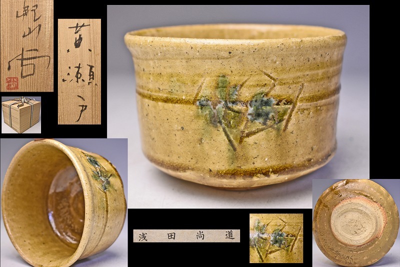 - 浅田尚道 ★ 黄瀬戸茶碗 ★ 共箱栞 ★ 上作 ★ 茶碗胴部中心の 胆礬部 サイン ★ 珍しい 黄瀬戸 ★ 淺田尚道 ★ 寡作 ★ 京都 久美浜 兜山