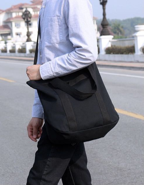 - トートバッグ 大容量 メンズ キャンバス エコ 無地 ショルダー A4 黒色 送料無料 新品