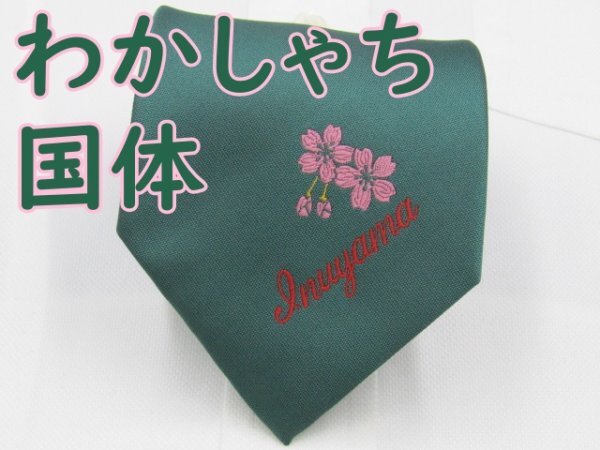- 【ご当地 わかしゃち国体】 OC 678 わかしゃち国体 ネクタイ 緑系 植物柄 ワンポイント 桜 ストライプ ジャガード