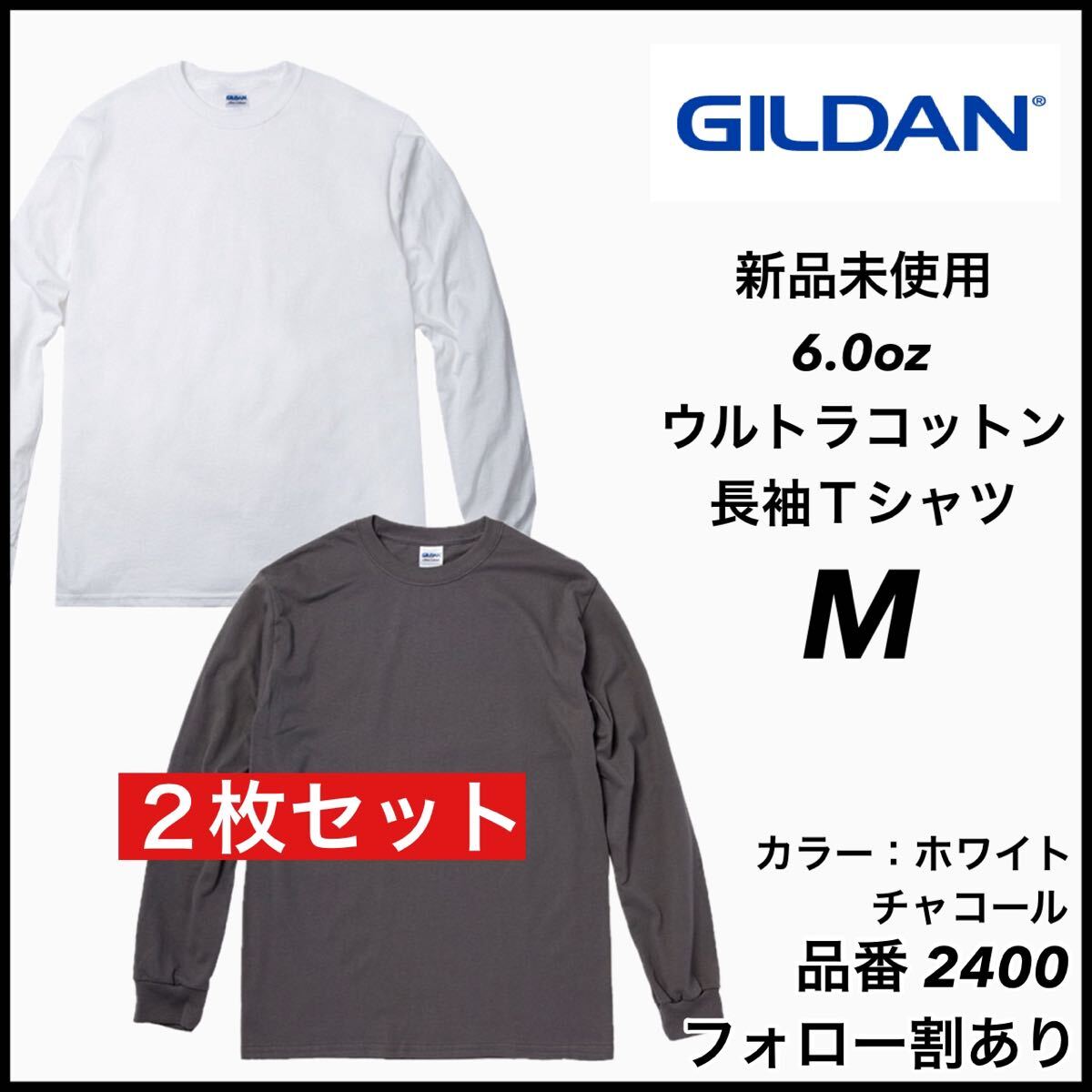 - 新品未使用 ギルダン GILDAN 6oz ウルトラコットン 無地 長袖Tシャツ ロンT 白ホワイト チャコール 2枚セット Mサイズ