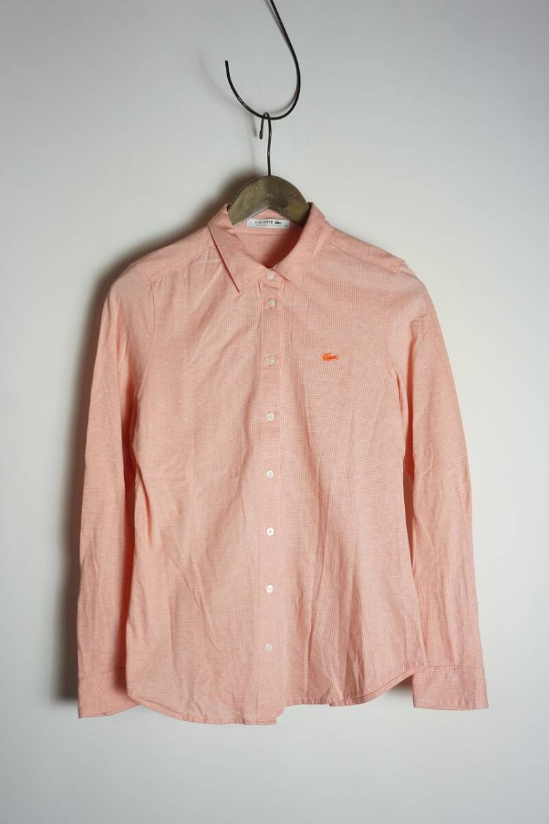 > 正規 LACOSTE ラコステ 長袖 ギンガムチェック シャツ KF013E サーモンピンク サイズ36 本物 1008O