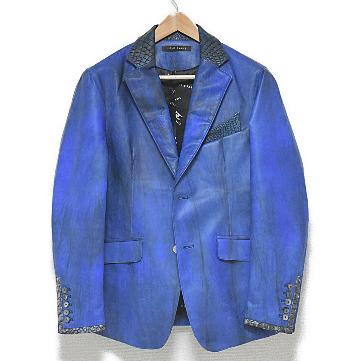 - ゼルパリ 超希少 豪華 ディアスキン クロコダイル ラペルジャケット ネイビー グラデーション レザージャケット ♯48 ZELE-PARIS