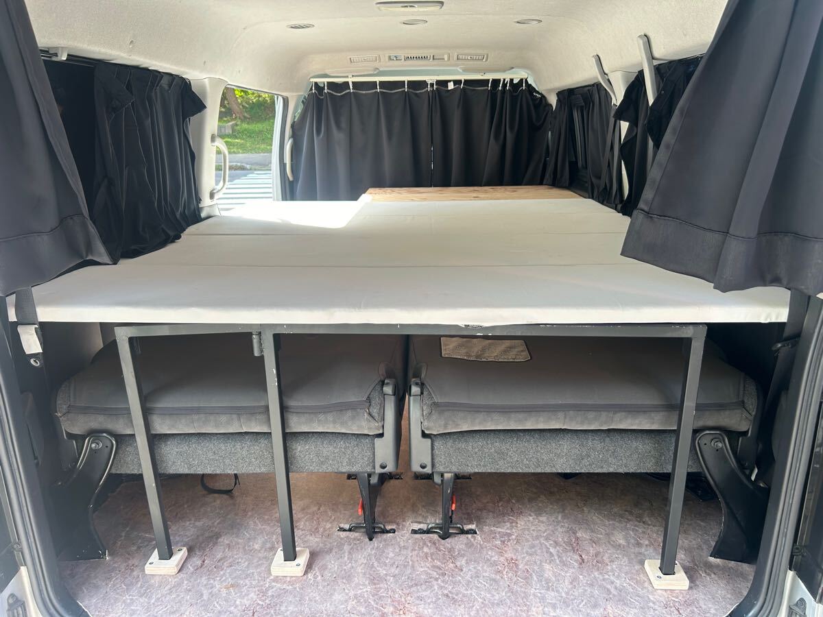 - ハイエースワゴン 10人乗り ベッドキット ホワイトレザー 車中泊 キャンプ フルベッド TRH219 TRH214 北海道 札幌