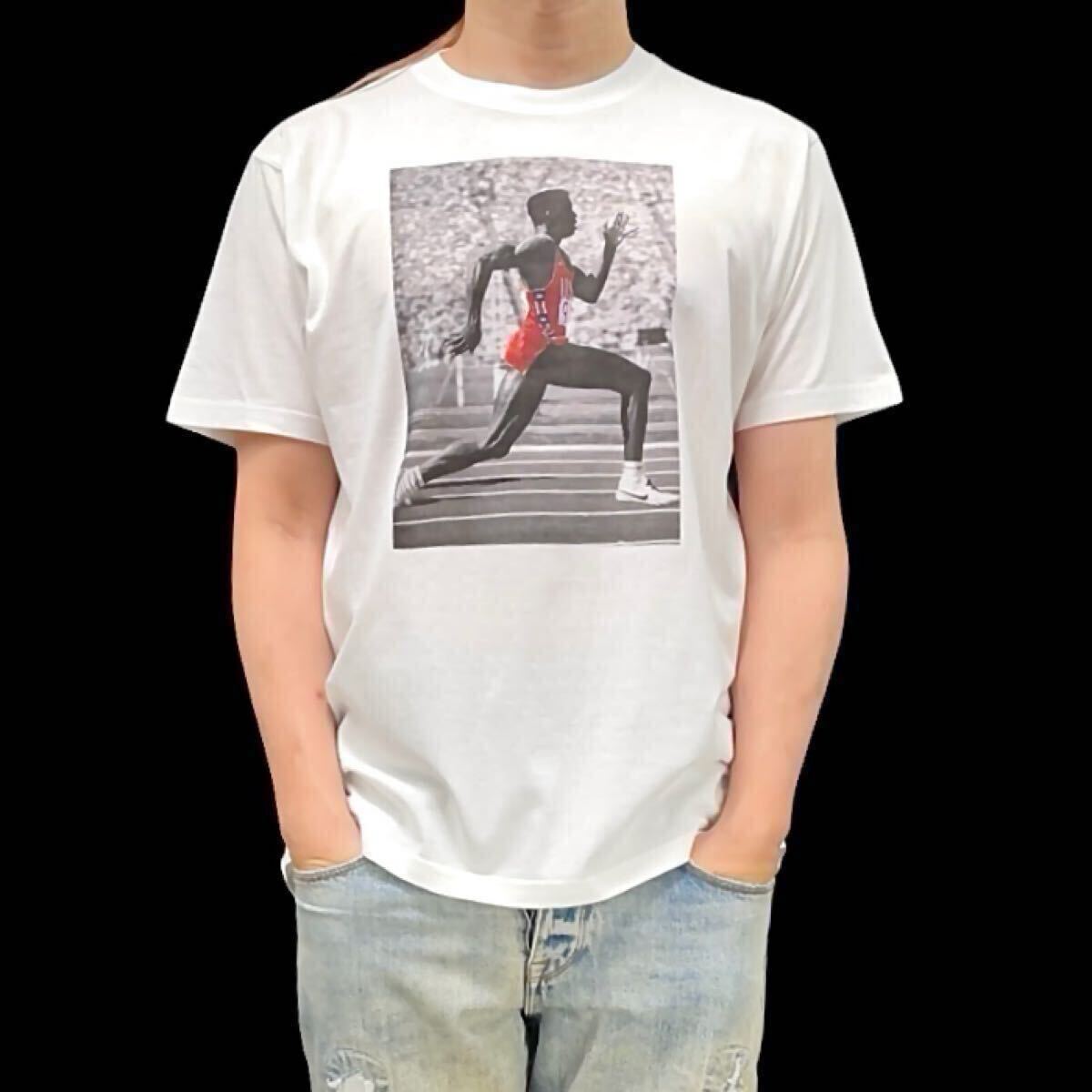 > 新品 カールルイス 1984 ロサンゼルス オリンピック 五輪 100m 金メダル スプリンター メダリスト アスリートTシャツ ユニセックス Mサイズ