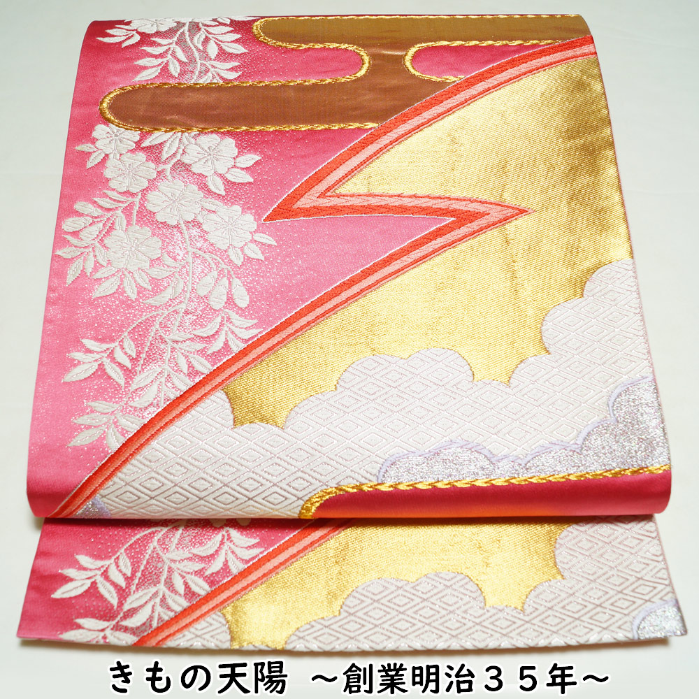 > 袋帯 エ霞に雲・桜模様 振袖用 純金箔 24K 六通柄 振袖向き リサイクル 帯 正絹 中古 リサイクル着物 振袖向き 着物 成人式 振袖 天陽