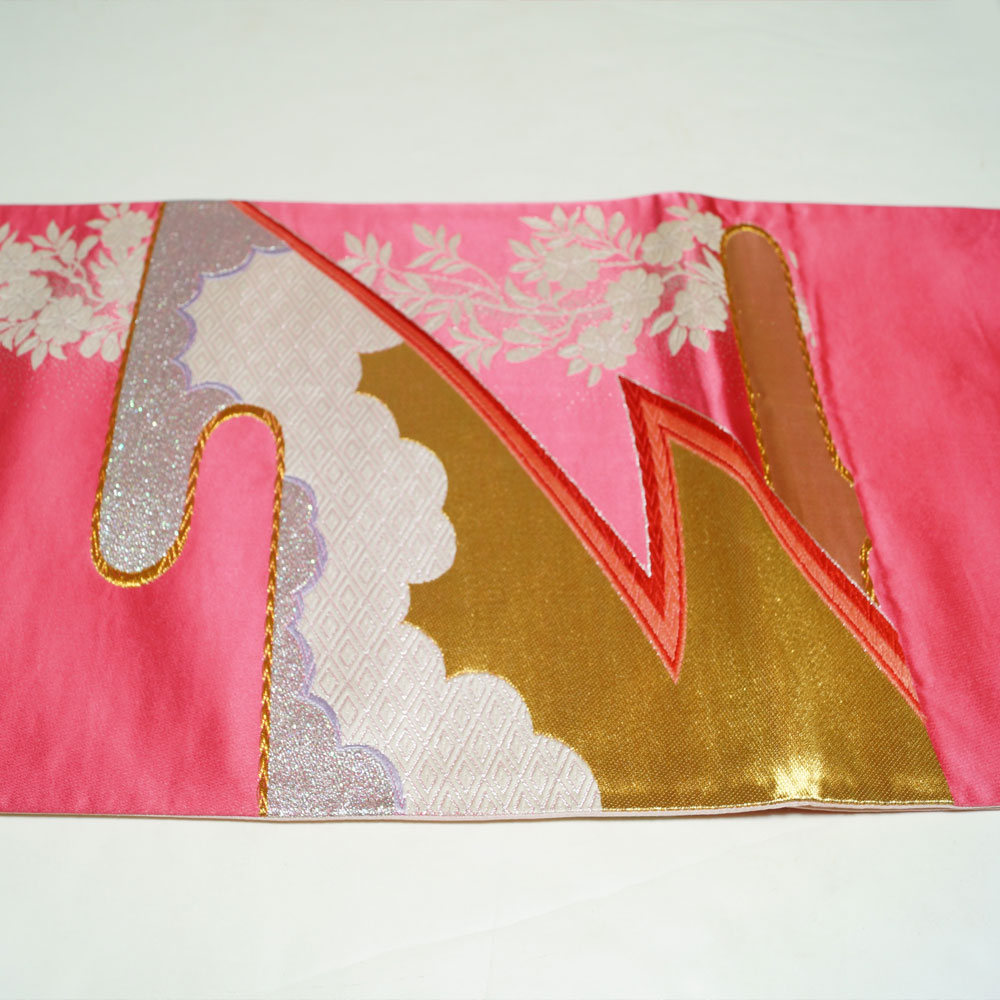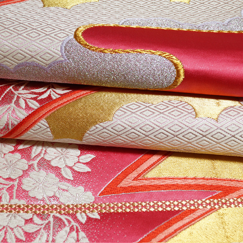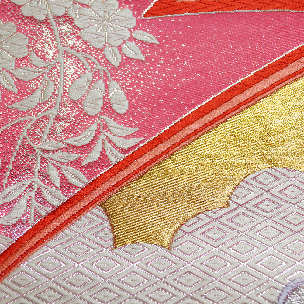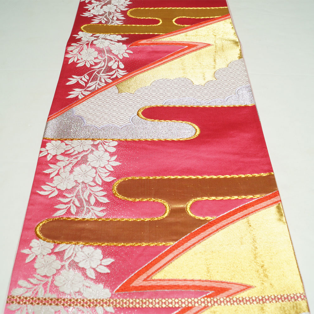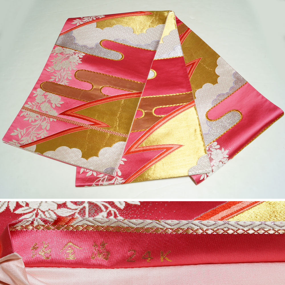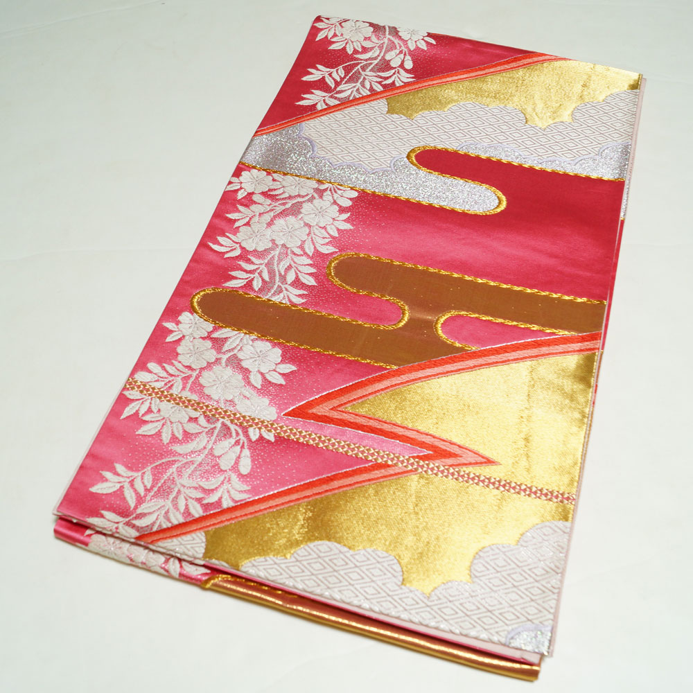 - 袋帯 エ霞に雲・桜模様 振袖用 純金箔 24K 六通柄 振袖向き リサイクル 帯 正絹 中古 リサイクル着物 振袖向き 着物 成人式 振袖 天陽