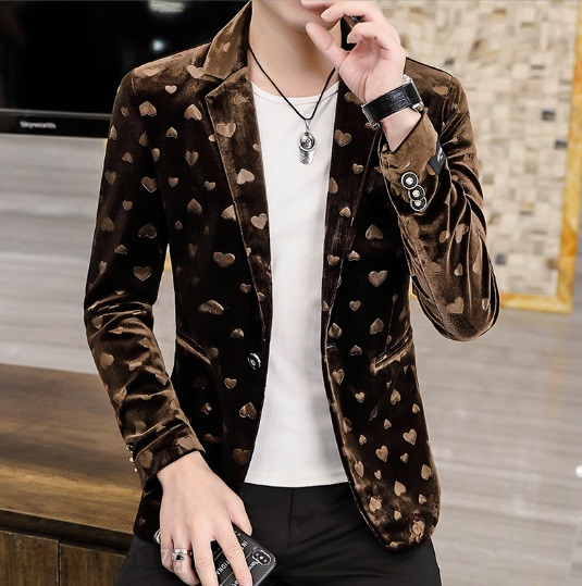 > ブレザー◇新品 テーラードジャケット 折り襟 スリム 柄物 メンズ トップス 紳士 カジュアルスーツ お洒落 サイズ選択可 コーヒー/XL