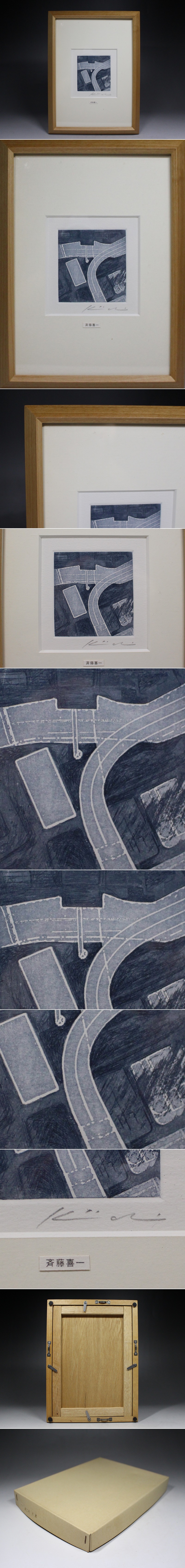 - ■真作■銅版画・斉藤喜一・直筆サイン・抽象画・額装・紙箱・f4133h