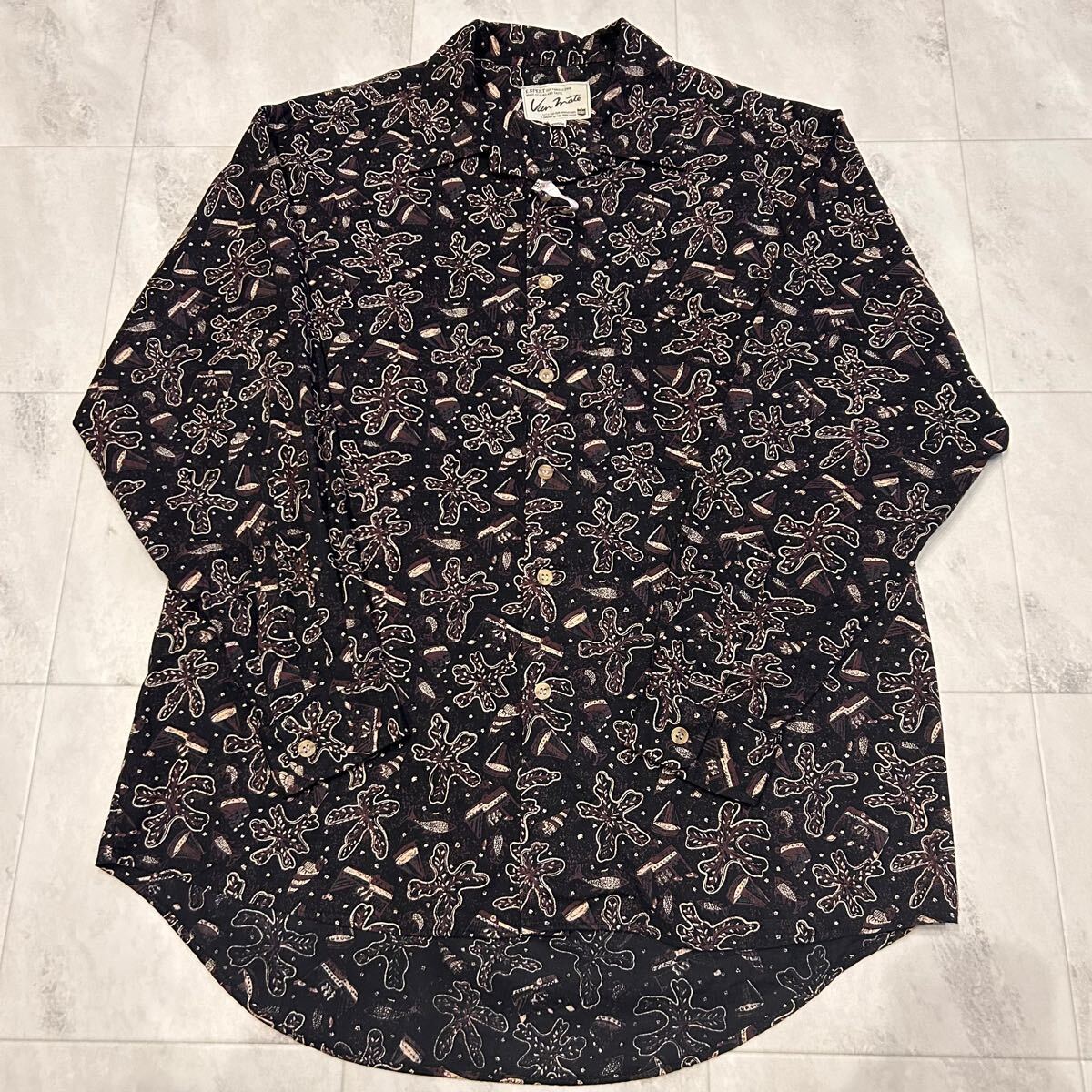 - Van Mate 総柄 柄シャツ 開襟 オープンカラー リーフ サカナ レトロ アート ビンテージ 長袖シャツ 綿100%