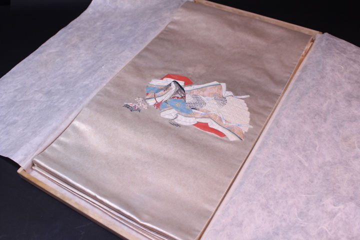 - d-5261 長嶋成織物 瀞銀錦 金箔袋帯 共箱 和装小物