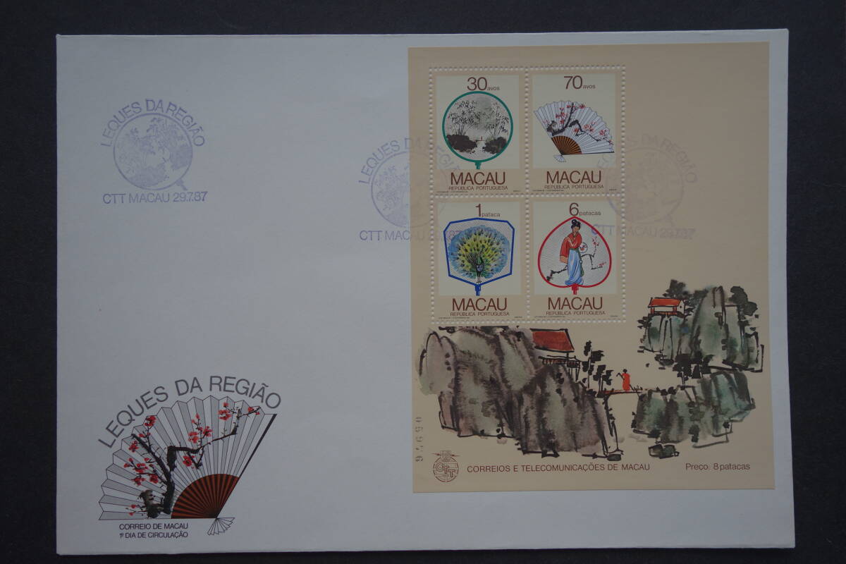 - 外国切手: マカオ切手「装飾扇」 小型シート貼り FDC(初日カバー)