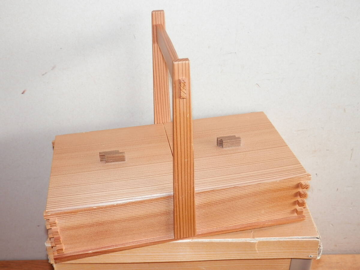 - 持ち手つき干菓子器 使用感あり 27.2×14.1×30.3cm 杉 白木 茶道具 木製