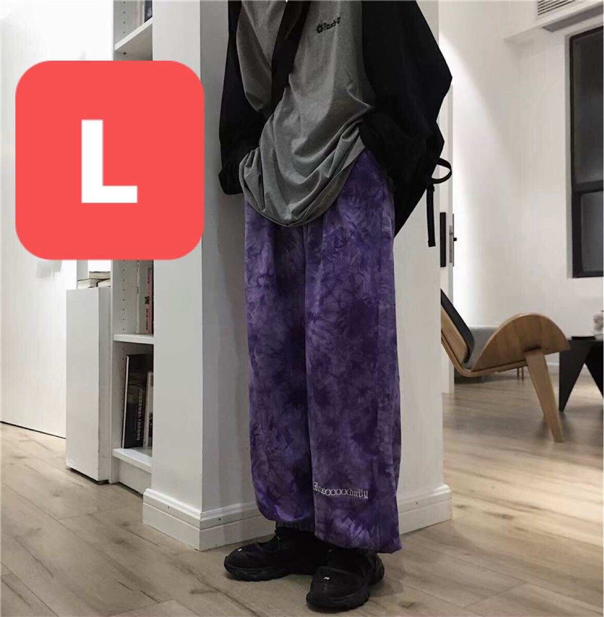 > ワイドパンツ タイダイ柄 スウェット イージーパンツ トレンド ストリート ユニセックス メンズ レディース パープル バイオレット 紫 L