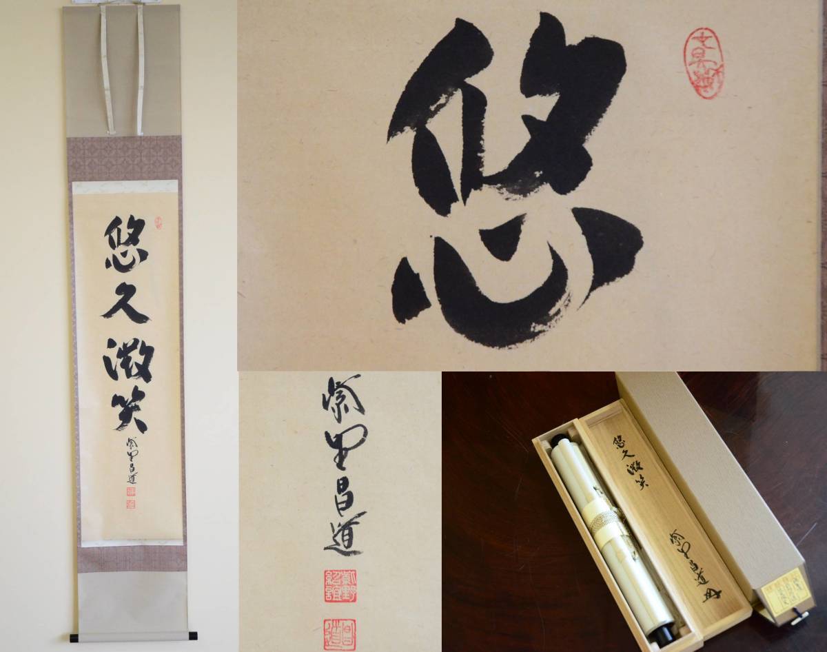 大徳寺派 瑞峯院 前田昌道 『愁久微笑』 掛軸 茶掛 紙本 共箱 真筆保証 茶道具