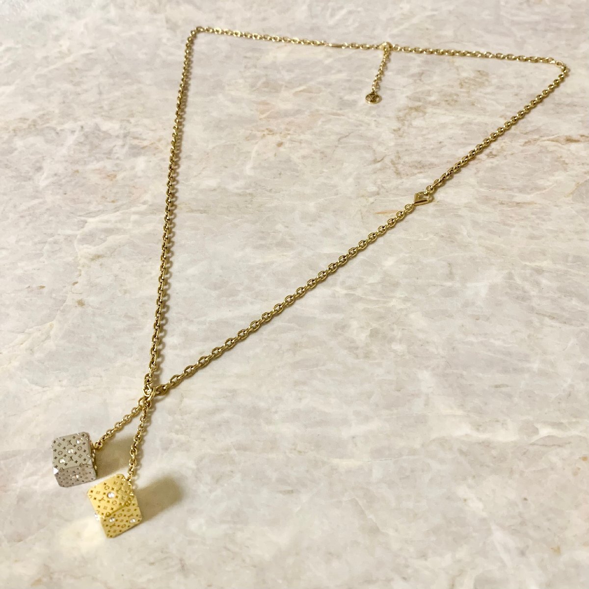 - ヴィトン ネックレス ロング ラッキーグラム モノグラム ダイス ストーン 石 サイコロ 大 コンビ ゴールド シルバー