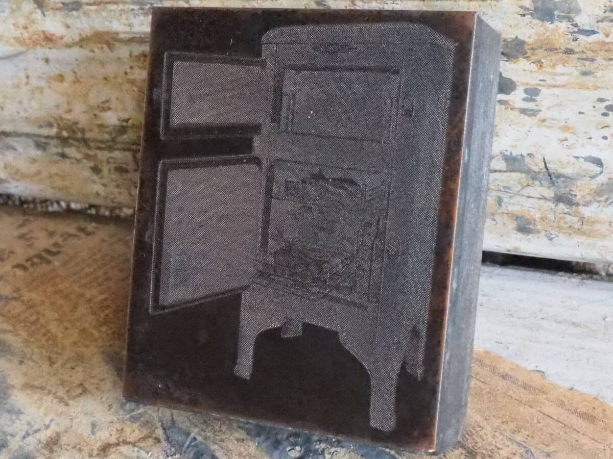 - 【古い銅版画スタンプ冷蔵庫D】石炭ストーブプロペラ機古道具アンティーク骨董インテリア紡織機インダストリアル判子印鑑印判活版印刷
